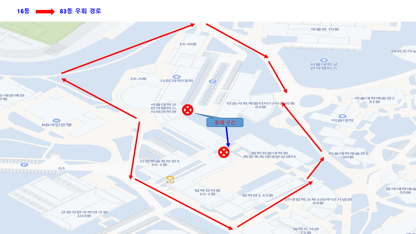 사회대 16동(2단계 구간) 리모델링 공사 시행에 따른 통제구간 안내