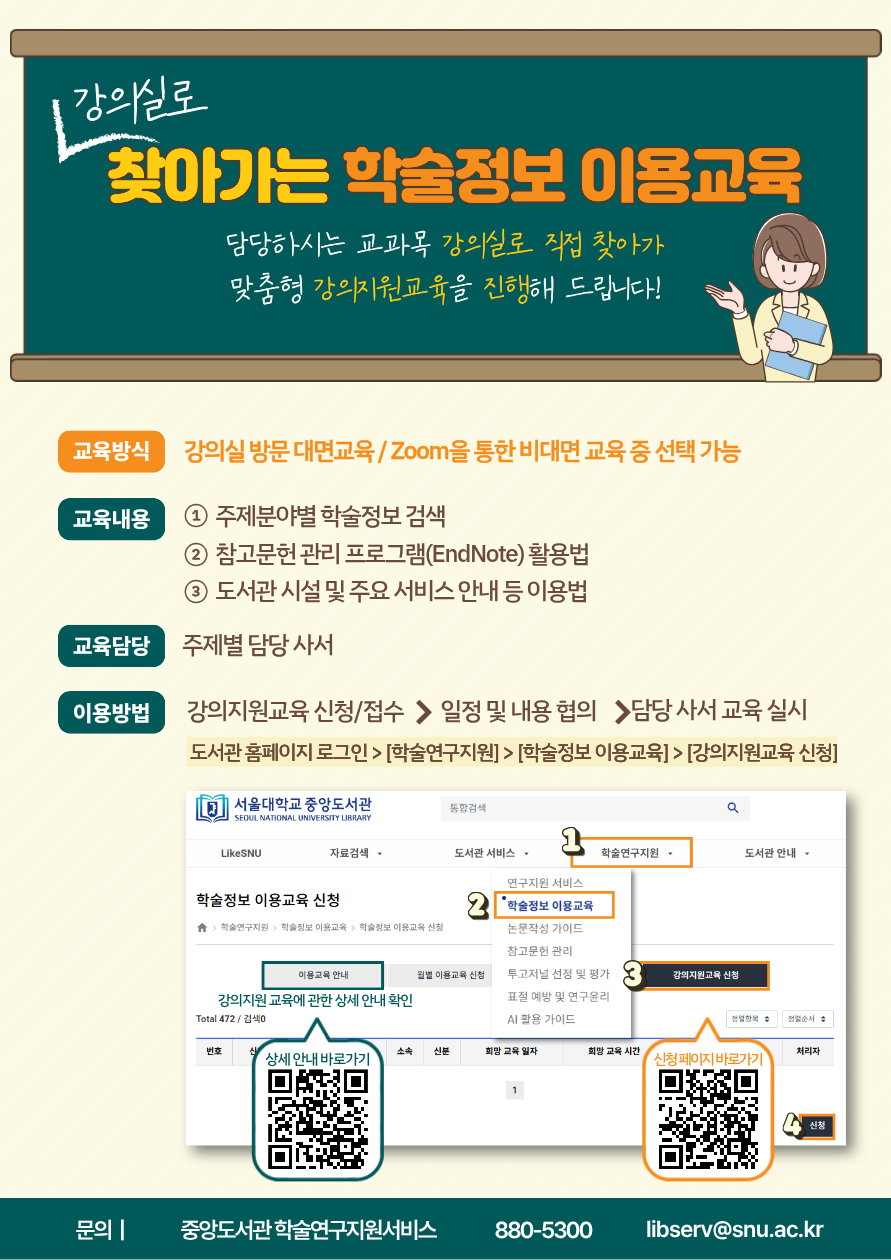 라. 문의: 중앙도서관 학술연구지원서비스(880-5300/libserv@snu.ac.kr)