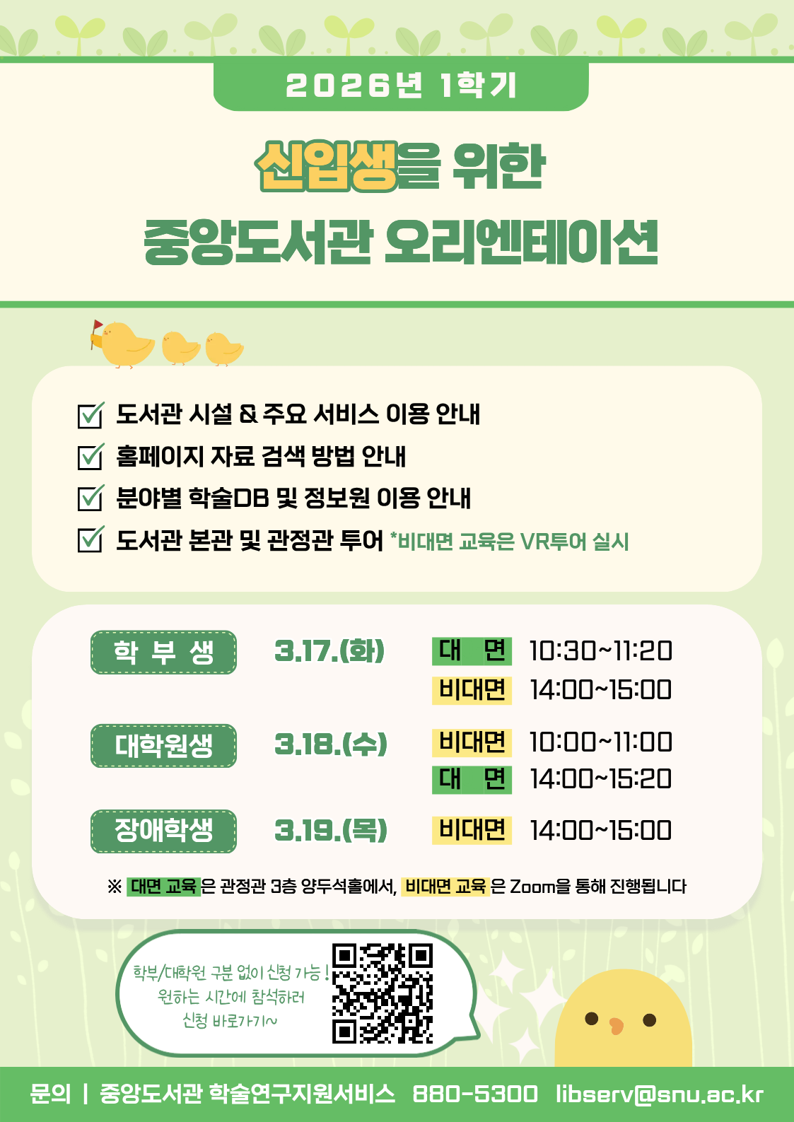 가. [전 구성원 대상] 2026학년도 1학기 중앙도서관 오리엔테이션 개최(온/오프라인 병행, 총 5회 실시)