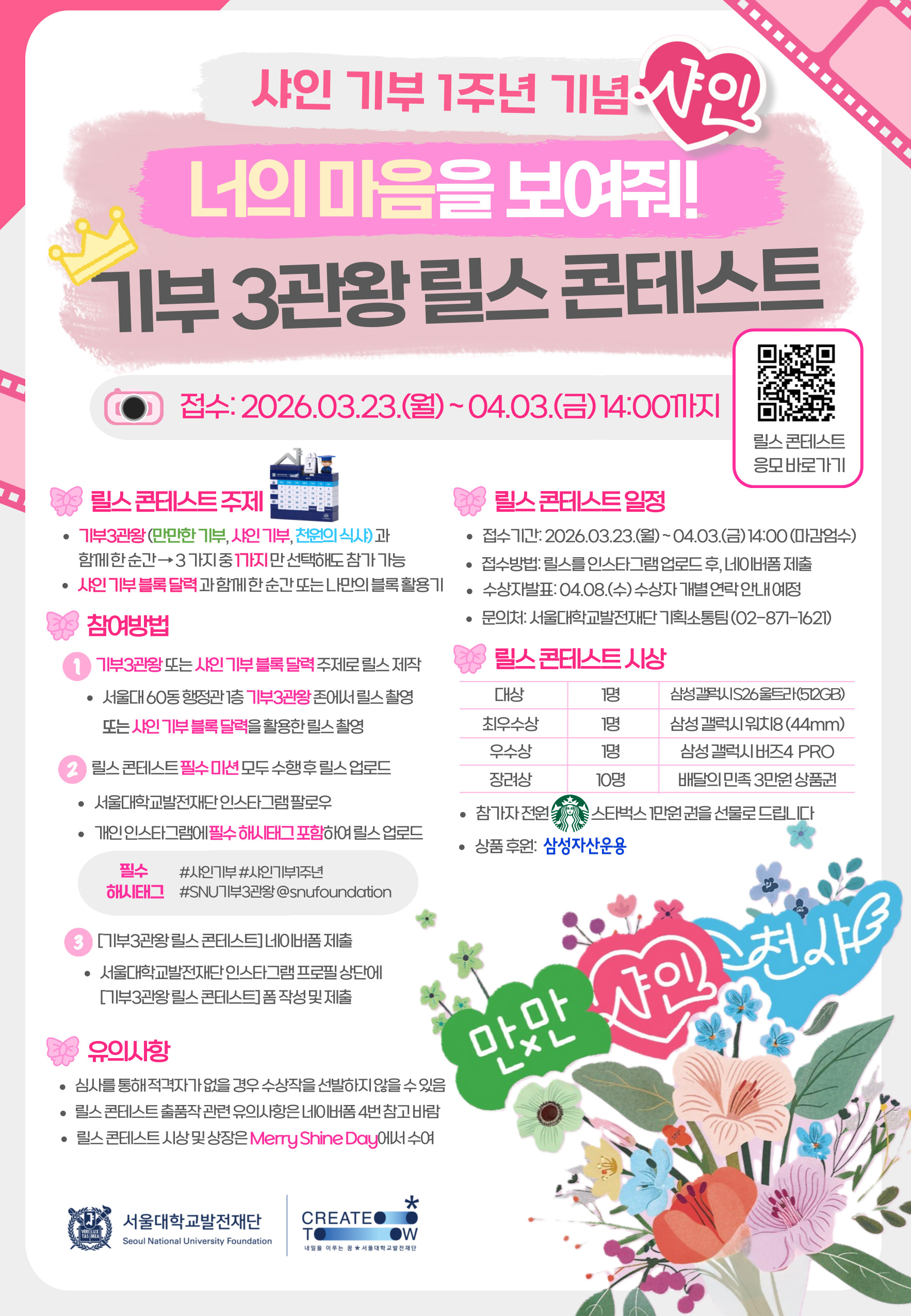 <샤인 기부> 1주년 기념 「기부3관왕 릴스 콘테스트」 안내